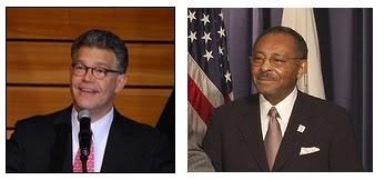 Al Franken (D-MN) left and Roland Burris (D-IL) right